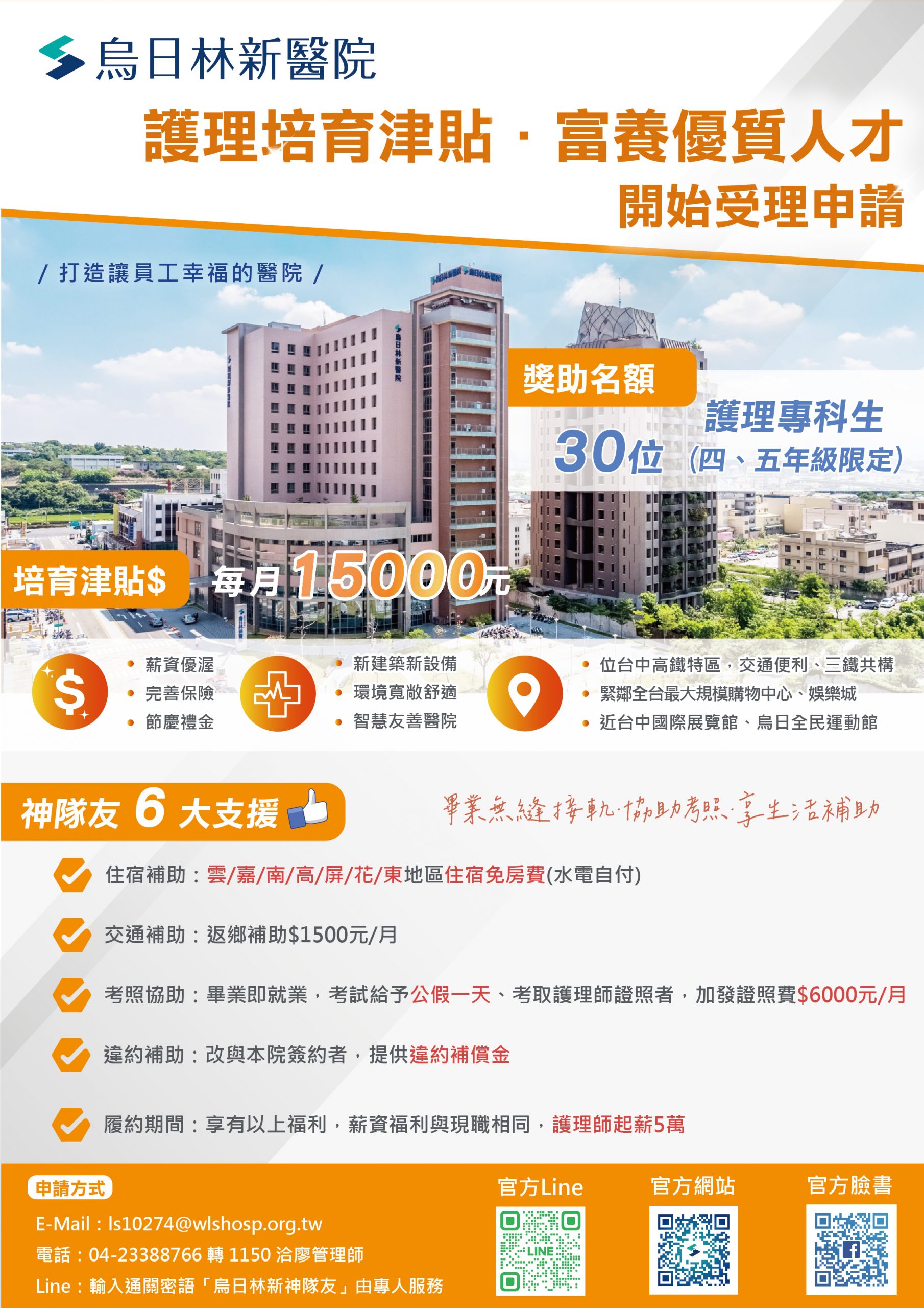 烏日林新醫院-「護理培育津貼.富養優質人才」開始受理申請